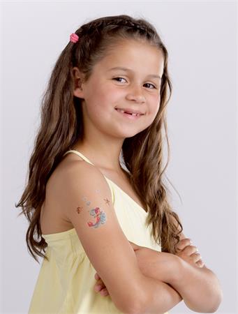 Az ideiglenes tetoválás vízálló, és megtévesztően valódinak tűnik. Egyszerűen vízzel kell felhelyezni, és kis olajjal könnyen eltávolítani. Természetesen a tetoválás csúcsminőségű, gyermekbiztos és dermatológiailag tesztelt és külső laboratóriumok által rendszeresen ellenőrzött. Élvezze saját tetováló stúdióját! ;-)